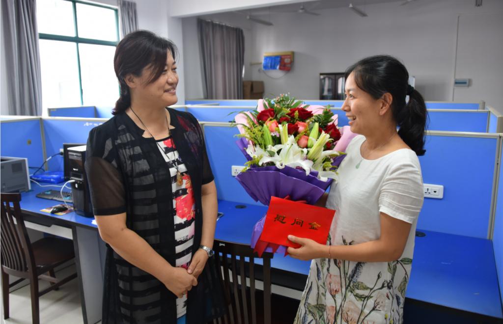 在教师节来临之际,9月7日上午,王玫副校长到我院02401室慰问优秀教师代表陶小梅并向她致以节日的问候和祝福。 慰问中,王玫副校长详细询问教师科研、教学和生活方面的情况。认真听取了陶小梅老师对学校工作的意见和建议,对他为学校和学院建设发展作出的贡献表示衷心的感谢,并希望他继续弘扬桂工精神,为学校和学院的建设发展出谋划策,勇挑教学科研、教学重担,以更饱满的热情、更出色的业绩,推动学校和学院事业不断开创新局面。陶小梅老师非常感谢学校对自己的关心和支持,并表示自己一定会再接再厉,拼搏努力,不负学校和学院的重托,时刻以一名优秀教师的标准严格要求自己,争取取得更大进步。 陪同王玫副校长慰问的有校教务处处长曾鸿鹄,校团委副书记潘思伊,我院党政领导班子参加了慰问活动。