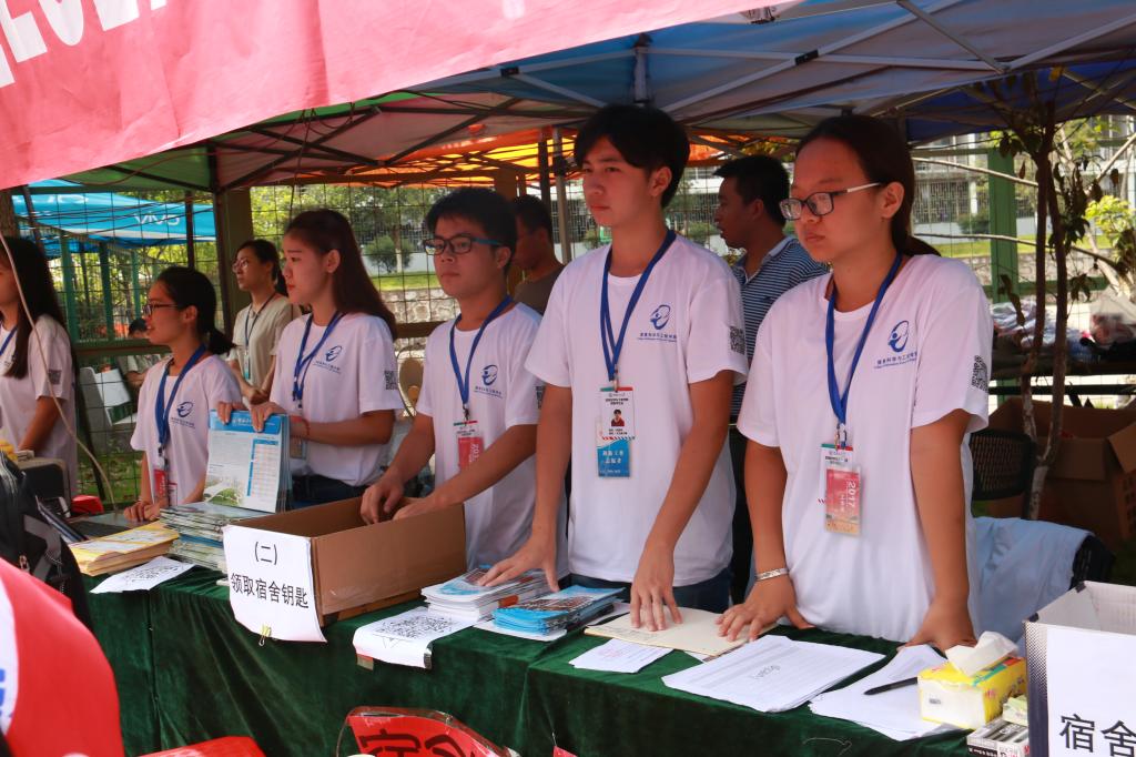 转眼又到开学季,信息学院迎来了2017级学生。为了充分发挥基层党组织战斗堡垒和党员的模范带头作用,我院积极组织广大党员参与到迎新工作中。9月9日上午,学院党委书记于海平、副书记李彦东,院长程小辉、副院长陈超泉、谢晓兰一行亲临新生报到现场,看望新生及家长,慰问工作人员,现场指导“党员服务队”开展迎新报到工作。 迎新工作中,无论是学生干部、志愿者,还是学生党员都热情高涨,认真负责,以实际行动向新生及家长提供热情的服务,充分展示了信息学院学子的良好风貌。