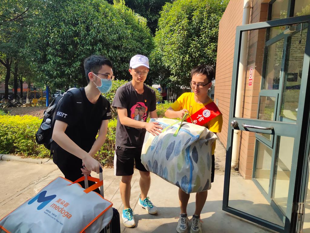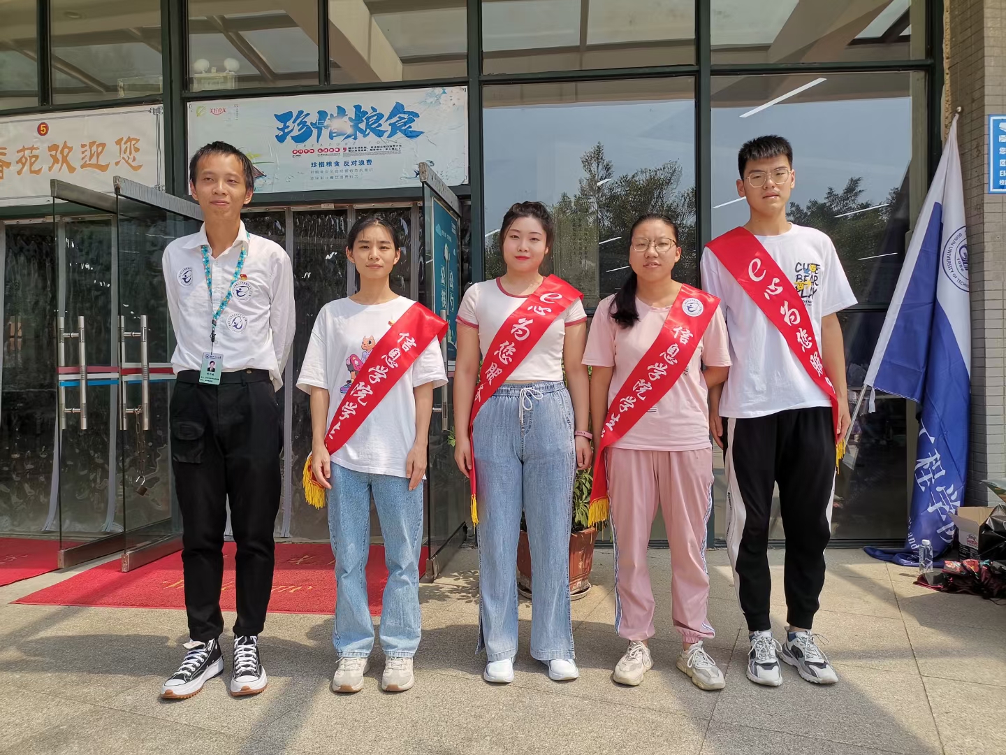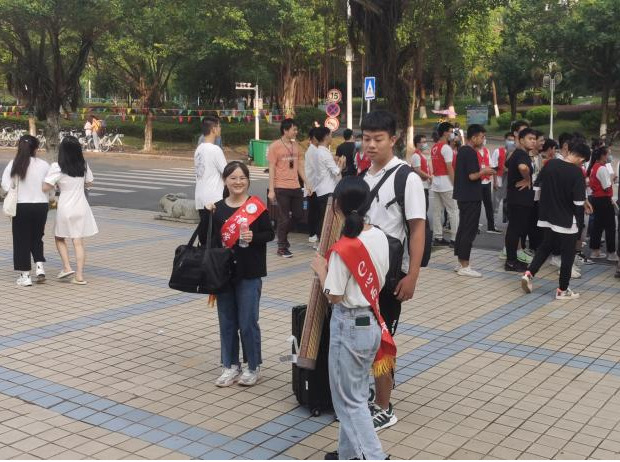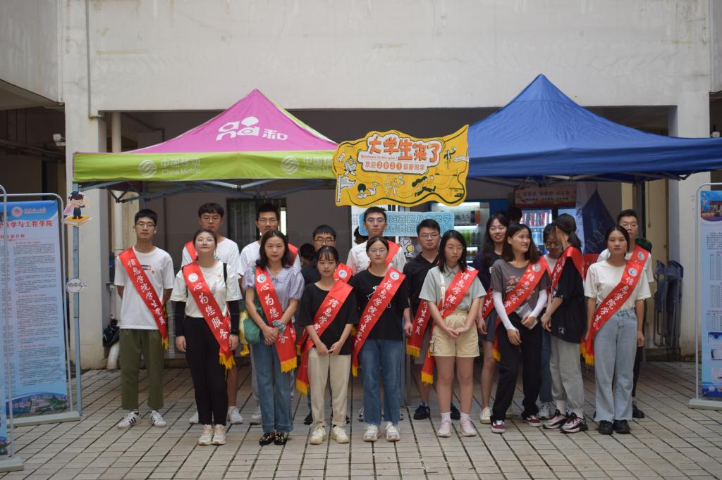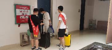 夏末初秋,2021年新生入学工作紧锣密鼓的展开了,由学院党委发起的“树形象、争先锋”党员志愿者迎新活动也在助力校园迎新。由我院20名职工党员、100余名学生党员组成的“党员志愿者服务队”,分成多个小组,积极为新学子们提供全方位入学服务。 学院党员志愿者 在迎新工作中,我院党员充分发挥了党员的先锋模范作用,早早便到宿舍区报到点及大巴车接送点,解答新生疑惑,帮助新生搬运行李,指导新生办理入学手续,以饱满的热情指引新同学顺利报到。 志愿者们的积极热情呈现出创先争优、夯实奋进、带头示范的生动景象,真正做到哪里有困难,哪里就有党员,展示了党员志愿者良好的精神风貌。 信息学院党员志愿者 一个党员就是一面旗帜,一个个身披红色绶带的党员同学们就仿佛校道上的一面面旗帜,迎接着新同学的到来,展现着学生党员的风采,也展示出新时期党员服务他人、先锋引领的作用,同时也让新生体会到了党员的先进性,引导新生把目标立在心中、把责任放在肩上,努力成为有社会有用青年。