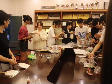 端午到,粽米香。为进一步弘扬中华优秀传统文化,增强民族文化认同感和自豪感,丰富党员业余生活,加强党支部凝聚力向心力,6月10日上午,学院在雁山校区立信楼举办“浓情端午 ‘粽’享时光”端午节系列活动,其中包括包粽子、染漆扇、绣香囊等内容。此次活动吸引了众多师生积极参与,营造了浓郁的端午节日氛围。 香囊,作为一种传统的端午节饰品,不仅具有驱邪避瘟的美好寓意,更是中华民族传统文化的一种体现。活动中,学院学生党建事务中心工作人员为同学们耐心讲解了香囊的制作技巧和端午节的文化背景,同学们一边学习,一边利用彩色布料、香料、针线等材料动手缝制,很快一个个色彩鲜艳、独具特色的香囊纷纷呈现在大家手中。 中国自古流传端午赐扇的习俗,端午染漆扇除了将扇子用于避暑纳凉、驱赶蚊虫之外,更代表了对亲朋好友的祝福,共祈端午安康。活动中,同学们将自己喜欢的染料滴入水中,混成美丽的波纹,再将素白的宣纸团扇缓缓旋转下沉,停留几秒着色后,慢慢从水中拿出,几许斑斓,几许素雅,一把把精美且图案独特的漆扇就制作完成啦! “包粽子”是本次活动的重头戏。折粽叶、填糯米、裹叶子、扎好线……一道道工序有条不紊,同学们看着自己亲手制作成形的“三角粽”、“四角粽”,感受到了满满的成就感。特别是从未包过粽子的师生,这一次,可算是又学会了一项“生活技能”!每一位参与者都亲身感受到节日的温暖与甜蜜。 共话传统文化,同承中华文明。此次端午节活动不仅让党员们感受到了浓厚的节日氛围,更达到了传承传统文化、坚定文化自信、增进情感交流、加强团队协作的目的。师生们纷纷为此次活动点赞,并表示在今后的学习生活中,将会继续厚植爱国主义情怀,弘扬中华优秀传统文化,铸牢中华民族共同体意识。 活动现场(一) 活动现场(二) 活动现场(三) 活动现场(四) (一审:蔡志勇;二审:阎安明;三审:熊英)