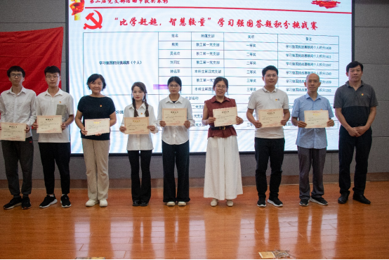 9月25日晚,雁山校区图书馆报告厅内洋溢着热烈的气氛,学院第二届党支部活动节的压轴赛事——“百年峥嵘今再绎,砥砺奋进强担当”情景剧演绎大赛在此隆重举行。学院党委书记熊英、党委副书记黎超业亲临现场,为参赛选手们加油鼓劲。 学院各师生支部党员对此次赛事积极响应、全情投入、认真准备。比赛过程中,各参赛队伍节目内容丰富接地气,表演精彩有品质,通过精心编排的剧情和声情并茂的演绎,将党的重要历史时刻和英雄人物事迹再现于舞台之上,深刻诠释了党的光辉历程和伟大建党精神,台下观众沉浸其中,心灵深受触动,现场不时爆发出阵阵热烈的掌声。为增强活动的趣味性和参与性,比赛中还巧妙地穿插了“党史知识问答”“摇一摇”等中场互动环节,不仅使观众在轻松愉悦的氛围中学习到丰富的党史知识,更进一步点燃了大家爱党爱国的热情。经过紧张激烈的角逐,大赛最终评选出一、二、三等奖和优秀奖等多个奖项。 颁奖环节,黎超业宣读了学院第二届党支部活动节的表彰决定,对在学习强国积分挑战赛、校园定向越野赛、五四红歌比赛、情景剧演绎大赛,以及志愿服务活动中表现突出的党员和党支部予以表彰。同时根据支部在各项活动中的积分情况,揭晓了第二届党支部活动节的获奖名单。 活动最后,熊英作了总结讲话,她高度肯定了第二届党支部活动节的重大意义和丰硕成果,并指出,本届党支部活动节主题突出、内容丰富,形式多样、亮点纷呈。系列活动的精心组织与实施,不仅成功地将爱党爱国教育与多元化活动融为一体,显著提升了支部活动的吸引力,而且有效检验了各支部的团队协作能力,为党员们展现风采搭建了舞台,进一步增强了支部的战斗力和凝聚力。她鼓励全体师生党员要继承和发扬党的优良传统和作风,在学习工作中发挥好模范表率作用,坚定理想信念,全面提升素质能力,为推进强国建设、民族复兴伟业贡献智慧和力量。 活动现场(一) 本科生第四党支部节目:《何为青年,青年何为》 本科生第三党支部节目:《忠骨所在之处,既是家乡》 本科生第一党支部节目:《巴黎和会》 研究生第三党支部节目:《满江红》 颁奖环节 学院领导与演职人员合影 (一审:孟 媛;二审:阎安明;三审:熊 英)