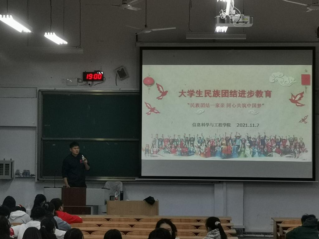 为学习贯彻习近平总书记在中央民族工作会议上重要讲话精神,大力弘扬民族团结精神,进一步筑牢学院师生中华民族共同体意识,学院以“民族团结进步教育宣传月”活动为契机,围绕“民族团结一家亲,同心共筑中国梦”为主题开展系列活动。活动从10月15日开始,历时一个月,在学院党委带领下,扎实开展多项活动,促进民族团结与和谐校园建设。 学院党委组织学院全体教职工开展民族团结进步教育和反对民族分裂教育,集中学习习近平总书记在中央民族工作会议上重要讲话精神以及有关民族团结的相关内容。组织各学生党支部通过“三会一课”开展党员民族团结教育;组织团支部开展“三个一”的民族团结及进步教育活动。同时,通过成长成才课、主题班会等形式加强对大学生的爱国主义、民族团结和反分裂教育,营造和谐校园文化。 学院还通过宣传栏、电子滚动屏进行“民族团结一家亲,同心共筑中国梦”宣传。运用易班APP创建优课,积极引导学生参加民族政策法规的答题,不断加强民族团结进步宣传教育,营造民族团结进步的浓厚氛围,铸牢中华民族共同体意识。通过开展系列宣传教育活动,积极做好学院师生的思想政治教育工作,将民族文化融入校园文化建设,促进各民族像石榴籽一样紧紧抱在一起,营造“中华民族一家亲”的良好氛围。 学院开展民族团结进步教育活动 学生第三党支部开展“民族团结一家亲,同心共筑中国梦”主题活动 辅导员利用成长成才课进行大学生民族团结进步教育 班主任开展大学生民族团结进步教育主题班会