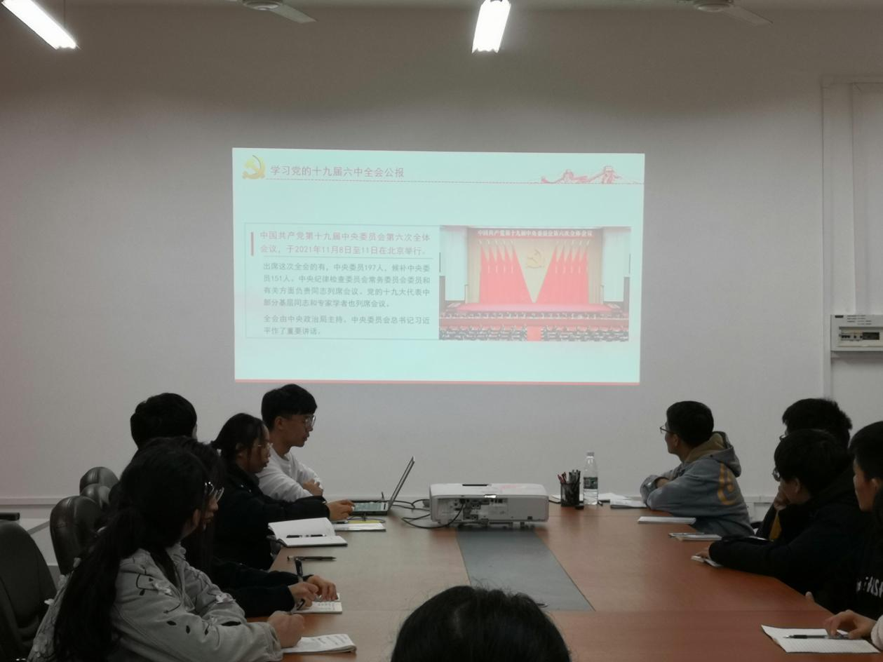 学生第三党支部开展党的十九届六中全会精神专题学习会