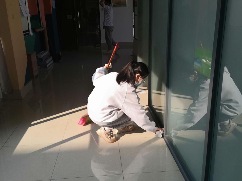 为进一步发挥党员模范带头作用,增强党组织的凝聚力、战斗力和号召力,4月19日下午,电子信息工程学生党支部开展以“发扬劳动精神,营造优良环境”为主题的党日活动。在立信楼四楼和五楼组织义务清扫活动,党支部全体党员和入党积极分子参加。 活动中,同学们充分发扬不怕脏、不怕累的优良品德和团结协作的良好风貌,分工协作、干劲十足,活动开展井然有序。大家相互合作,认真、细致的打扫每个角落,确保卫生不留死角。经过了一个多小时的劳动,为学院师生营造了一个整洁卫生的工作学习环境。 最后,支部书记闫振南老师指出,党日活动在培养成员们思想觉悟的同时也要注重对理论的实践,今后党支部将开展更多有特色、有意义的党日活动,希望支部成员们积极参与,为身边的同学们树立良好的榜样,在日常生活中处处起到模范带头作用。 此次主题党日活动把组织生活与清扫环境相结合,不仅美化了工作环境,还增强了各位党员的的服务意识和劳动观念,用实际行动诠释和践行了党员的先锋模范作用,为营造整洁有序的学院环境贡献了自己的一份力量。 党员们积极参加劳动教育 党支部成员合影