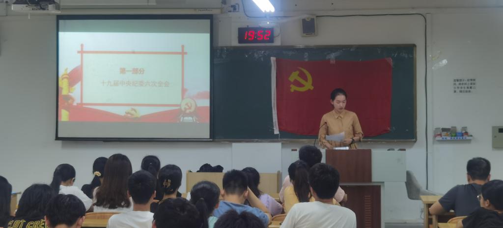 6月7日晚,计算机学生第一党支部于06209教室开展学习习近平总书记在十九届中央纪委六次全会上的重要讲话精神暨廉政教育主题党日活动。本次党日活动由李君同志主持,支部39名同志参加本次会议。 首先,李君同志带领大家共同了解十九届中央纪委六次全会,学习了解题为《运用党的百年奋斗历史经验推动纪检监察工作高质量发展,迎接党的二十大胜利召开》的工作报告。随后,李君同志带领党员们学习十九届中央纪委六次全会讲话精神,总结运用党的百年奋斗历史经验,坚持党中央集中统一领导,坚持党要管党、全面从严治党,坚持以党的政治建设为统领,坚持严的主基调不动摇,坚持发扬钉钉子精神加强作风建设,坚持以零容忍态度惩治腐败,坚持纠正一切损害群众利益的腐败和不正之风,坚持抓住“关键少数”以上率下,坚持完善党和国家监督制度,以伟大自我革命引领伟大社会革命,坚持不懈把全面从严治党向纵深推进。最后,李君同志为大家介绍了中国共产党纪律检查委员会工作条例和警示教育案例。 本次党日活动的开展,使得党员们对十九届中央纪委六次全会讲话精神有了一个更全面、更深入的认识,更加坚定历史自信,坚持自我革命,增强在日常生活中自我净化、自我完善、自我革新、自我提高能力,为大学生投入全面建设社会主义现代化国家、实现中华民族伟大复兴的中国梦提供坚强思想政治保证。 会议现场(一) 会议现场(二)