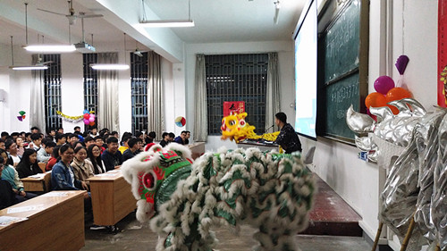 2018年11月25日,我院龙狮协会在06409教室进行招新宣讲会。宣讲会由孟德老师主持,龙狮协会全体成员参与。协会非常重视本次招新宣讲会,会前积极筹备会议的场地以及现场布置工作。精心准备了龙身和狮子等道具,只为了让同学们可以近距离了解协会。