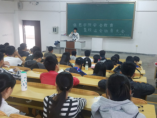 2018年11月6日,我院在教5栋05102组织开展安全教育暨校运会动员大会,学院团委学生会主席团、各部长及学生运动员,扬爱协会、奋斗社、龙狮协会、学院纠察队、新媒体中心等负责人到场参加。本次大会由学院党委副书记刘志丽主讲,学院辅导员肖利斌主持。