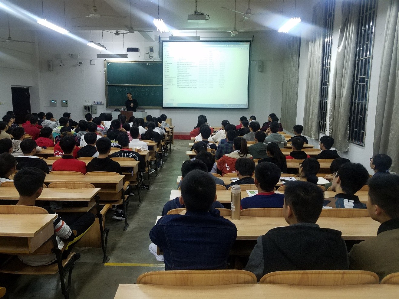 2018年10月16日晚7时,信息学院2017级、2018级共450名学生在教六栋06207、06408、06409参加由学院组织开展的“高效使用办公软件 提升商务职场生存能力”分享会,旨在启发学生有意识地学习办公软件,熟悉和掌握高效使用办公软件的方式方法。