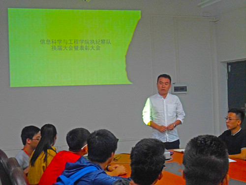 为了表彰我院执纪纠察队成员在过去一年中取得的优异成绩,总结工作经验,探索新的发展方式,9月30日中午,信息学院执纪纠察队表彰大会暨第三届换届仪式于02501会议室召开。学院饶蠡老师、鞠洋洋老师、孟德老师以及纠察队全体队员参加了此次会议。