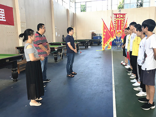 2018年7月10日下午,校团委副书记陈小波、我院党委副书记李彦东来到雁山校区体育训练馆为运动员们加油打气。通过观看运动员们的比赛全套动作展示,给予了运动员们肯定,并鼓励运动员们赛出风格,赛出水平,展示桂工学子风采,也希望运动员们通过参加比赛,多学习中国传统体育文化,在今后的校园文化活动中更好地发挥学院特色。学院李书记强调学生们在参赛中要注意安全,同时不要落下学习,也感谢校团委对龙狮协会成立以来各项活动的鼎力支持。