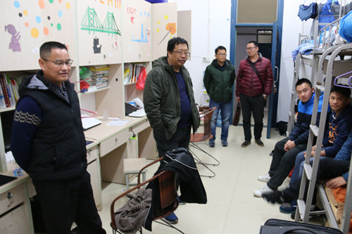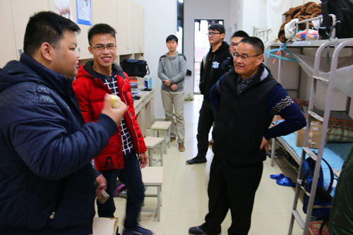 2月28日晚,学院党委于海平书记、李彦东副书记带领学工人员走访了雁山26栋学生宿舍,了解新学期学生的生活状态和思想动态。 走访中,于书记和李副书记与同学们进行了亲切交流,详细询问了同学们开学初的思想、学习和生活情况,重点了解了2015级同学专业分流后的分班情况和宿舍调整情况,耐心解答同学们对生活、学业和专业分流等方面的具体问题,并希望同学们尽快调整好生活节奏,以饱满的热忱投入到新学期的学习生活中。 走访期间,学院领导还对宿舍卫生和安全状况进行了排查,嘱咐同学们注意防火防盗,增强安全意识,杜绝安全事故发生。
