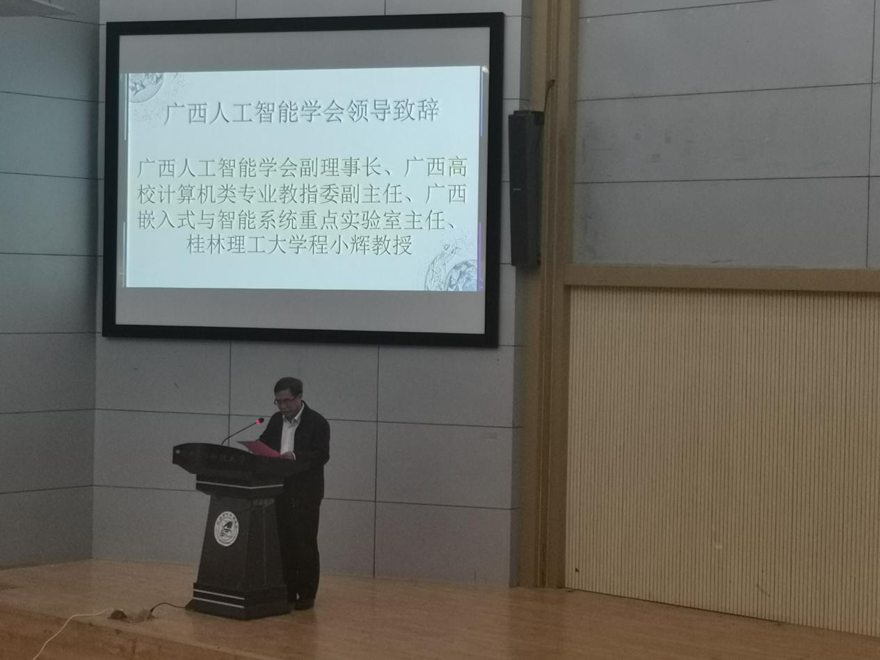 11月1日至3日,2019年第一届广西人工智能设计大赛决赛在桂林电子科技大学花江校区举行,我院共57名同学进入决赛。 我院程小辉教授、邓昀教授出席了开幕式。程教授致辞表示,广西区教育厅和广西各高校集中人力、物力和财力,支持人工智能设计的发展,并举办人工智能设计大赛,充分体现了大数据环境下数据智能化的趋势和方向。在教师团队精心指导下,我院学生在比赛过程中全力以赴、发挥稳定,取得了2项一等奖、7项二等奖和3项三等奖的好成绩。本次比赛也激励着我院师生参与人工智能前沿理论和算法研究的热情。 第一届广西人工智能设计大赛决赛开幕式程小辉教授讲话 我院师生现场报道注册合影(11月1日) 我院师生赛后合影(11月2日) 第一届人工智能大赛颁奖典礼现场(11月3日) 图文来源:冯思豫