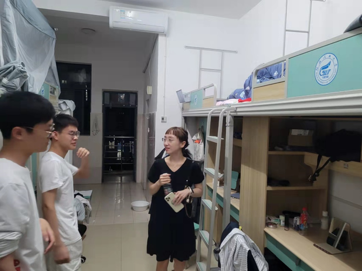 为切实做好春季开学后研究生安全工作,筑牢安全工作防线,学院董明刚副院长、研究生辅导员李雪君老师及学院研究生会同学,于3月16日下午组织开展了针对学院研究生宿舍、2号教学楼研究生实验室安全专项检查工作。 本次检查以贯彻落实学校、学院近期要求、推动重要工作任务等情况为重点,在检查中,董明刚副院长与辅导员李雪君老师及研究生会的检查组同学赴学院研究生各宿舍、2号教学楼各相关实验室等场所进行了卫生、秩序、用电、用火等全面彻底的排查。并向在学院研究生仔细询问了学习生活和返校后心理情况,传达了学校关于安全保障的相关政策和管理要求等。 从本次专项检查结果来看,研究生宿舍和实验室基本能够按照学校要求做好各项安全、文明工作。按照学院安全工作部署,信息学院研究生会将持续开展此类安全专项检查督查工作,进一步巩固和保障学院研究生宿舍、实验室安全与文明成效。 董明刚副院长检查研究生实验室 辅导员李雪君老师与学院研究生学生会同学检查研究生宿舍
