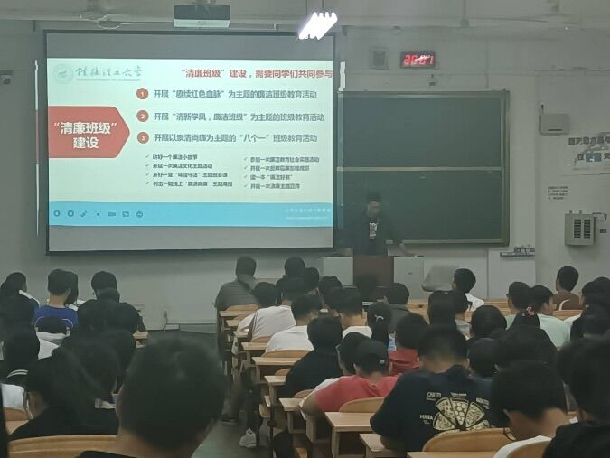 为贯彻落实《永利yl23411集团大力推进“清廉桂工”建设实施方案》(桂理工党〔2022〕15号)《关于扎实推进“清廉桂工”建设的十项工作》(桂理工党〔2022〕13号)和《2022年秋季学期“清廉桂工”建设十项重点任务清单》文件精神,加强学生思想政治教育,积极培育和践行社会主义核心价值观,推进廉洁文化进校园、进宿舍、进课堂、进班级,切实实现学生清淳工程,全面推进“三全育人”,培育优良学风,10月30日,学院各年级通过晚教育,积极开展“清新学风,廉洁班级”主题教育。活动明确了清廉的含义,列举了陶渊明、阮正、陈云、周恩来等清廉的典范,讲述了清廉小故事,同时也通报了腐败的丑陋行为,在鲜明的对比中提高了学生的清廉意识,规范了学生的行为习惯。 此次“清新学风,廉洁班级”主题教育活动,促进了学生的理论学习和业务学习,营造了优良学风,维护了学术道德,规范了学术行为,使清廉理念入脑、入心、入行,助力了大学生成长成才。 2019级晚教育进行“清新学风,廉洁班级”主题教育
