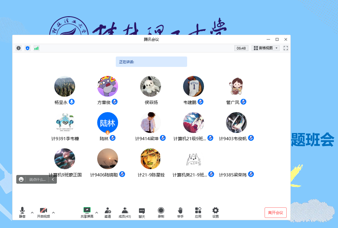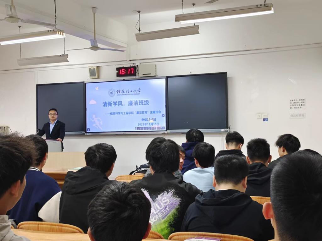 为深入学习贯彻党的二十大精神和习近平总书记重要讲话精神,进一步增强广大学生诚信意识、责任意识和廉洁意识,扎实推进清廉班级建设,根据《永利yl23411集团大力推进“清廉桂工”建设实施方案》部署要求,学院各年级于11月1日——11月16日,相继开展了“廉洁教育”主题班会。 班会中,各班班主任从开展大学生诚信教育、廉洁教育的意义为切入点,通过学习习近平总书记对青年的要求,以及廉洁案例分享,指引青年学生如何养成廉洁品格,形成廉洁价值理念和行为规范,生动形象地促进了廉洁意识入脑、入心,推动立德树人、以廉化人向纵深发展。各班同学们热情参与到讨论中,积极发言,各抒己见,表达了自己成为一名廉洁的大学生的决心。 今后学院还将面向全院学生举办廉洁教育系列活动,并使之常态化,旨在教育引导学生树立廉洁观念,增强诚信意识,完善人格修养,从而有效营造崇尚廉洁、以廉为荣的校园文化环境,让清廉文化成为滋养学生青春成长的土壤和养分,让师生在活动中理解廉洁素养的内涵,用廉洁自律精神指导实践,树立清新学风、建设清廉班级。 21级计算机类4班开展“廉洁教育”主题班会 21级电子信息类4班开展“廉洁教育”主题班会 21级计算机类9班开展线上“廉洁教育”主题班会