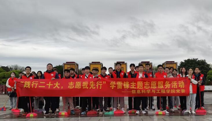 为深入贯彻落实习近平总书记对深入开展学雷锋活动作出的重要指示精神,引导全院青年志愿者用实际行动诠释雷锋精神的时代内涵,在“奉献、友爱、互助、进步”中践行初心使命,3月间,学院通过组织开展形式多样的志愿服务活动,在全院青年志愿者中掀起学雷锋活动新热潮。 学院志愿者服务队以“践行二十大,志愿服务我先行”为主题,通过宣讲文明骑行和有序停放知识、对学校公共场所和宿舍周边的主要区域进行全面清扫、到桂林园博园景区开展公共环境卫生清理,充分发扬“不怕脏、不怕苦、不怕累”的精神,以实际行动为营造整洁优美、文明有序的环境贡献力量。开展图书捐赠活动,让爱心在校园中传递,让书籍在同学间共享。走进学院办公室、党务办公室、实验室,协助开展事务服务工作,争做有理想、敢担当、能吃苦、肯奋斗的新时代好青年,更好发挥了志愿服务的积极作用。 雷锋精神,人人可学,奉献爱心,处处可为。学院认真落实立德树人根本任务,通过引导广大青年志愿者深入学习贯彻党的二十大精神,将志愿服务活动融入日常、化作经常,使雷锋精神的赓续传承与青年学子的担当作为有机结合,在全院青年志愿者中营造了浓厚的学雷锋氛围,让雷锋精神得以生根发芽、常在常新,不断焕发出新的时代活力。 活动现场(一) 活动现场(二) 活动现场(三)