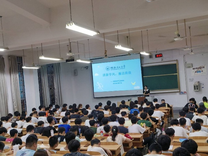 为深入学习贯彻党的二十大精神,贯彻落实党中央《关于加强新时代廉洁文化建设的意见》,引导学院师生进一步夯实清正廉洁思想根基、厚植廉洁文化基础、培养廉洁自律道德操守、弘扬崇廉拒腐社会风尚,不断增强廉洁育人、廉洁修身意识,5月21日晚,学院各年级同上一节廉洁教育课。 课上,各年级辅导员紧紧围绕廉洁主题,向学生讲述了廉洁故事,挖掘了革命先辈、历史人物和身边榜样的廉洁崇高品格,同时以反面教材敲响警钟,强化了同学们对廉洁重要性的认识。课后,学生们纷纷表示要以身作则、率先垂范,坚定理想信念、践行初心使命,形成廉洁意识的“防火墙”,为推动清廉学院建设作出贡献。 此次廉洁教育课教育引导学生知敬畏、存戒惧、守底线,促使清廉理念深入人心。学院高度重视廉洁文化建设,持续强化廉洁文化建设的针对性、实效性,让廉洁意识内化于心、外化于行,让清风正气在学院蔚然成风。 2021级开展廉洁教育课 2022级开展廉洁教育课