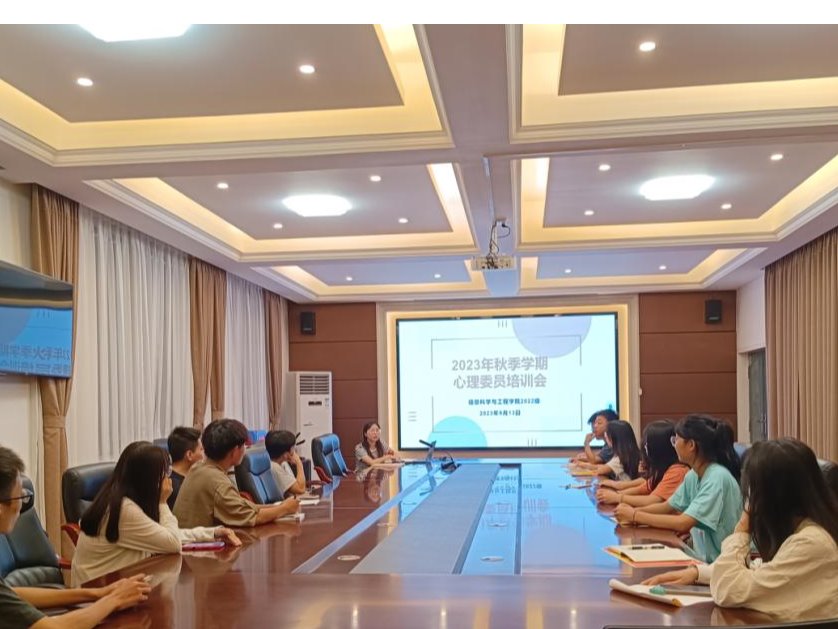 为加强心理委员队伍建设,扎实有效地开展2022级心理健康教育工作,9月13日,2022级召开秋季学期心理委员培训会,培训会由2022级辅导员王东京主讲,2022级全体心理委员参会。 培训会上,王东京老师先是围绕心理委员角色定位、工作职责与日常事务、工作要求、受关注群体特征以及心理帮扶的方式方法等方面对心理委员展开了培训。随后,参会心理委员就工作中遇到的问题进行提问,王东京老师对心理委员提出的问题进行了一一解答。 此次心理委员培训会的召开,有助于心理委员正确理解其工作的重要意义,增强了心理委员的责任感,为今后开展班级心理工作奠定了良好基础。 培训会现场
