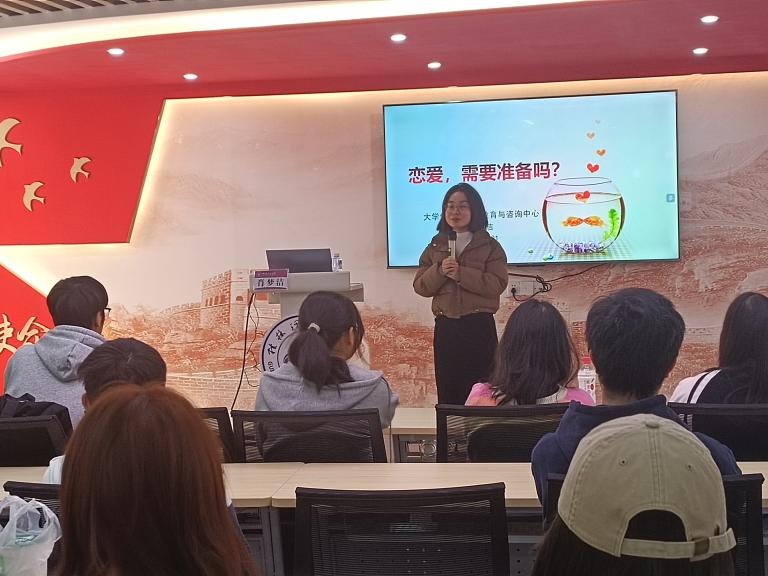 为帮助同学们树立正确的恋爱观,学院于12月1日下午在明园一站式思政大讲堂举办题为《恋爱,需要准备吗?》的心理讲座,邀请学校心理健康教育与咨询中心肖梦洁老师担任主讲人,来自各学院70余名学生参与本次讲座。 讲座伊始,肖梦洁老师以情境讲解的方式告诉同学们爱是需要勇敢表达的。接着,通过小组游戏的方式拉近了小组内部彼此的距离,营造了轻松愉快的氛围。随后,肖梦洁老师组织小组内部进行爱情价值拍卖,挑选出自己心目中的恋爱观,并互相分享了选择特定恋爱观的原因。最后,肖梦洁老师鼓励同学们要培养学会爱的能力,学会自爱,理解爱,回应爱,感受爱。 本次讲座让同学们了解了恋爱双方男女方彼此的想法,加深了对恋爱本质的认识,教会了同学们在恋爱中感受生活,追寻自我,激发了同学们勇敢尝试,热爱生活的健康情感。 讲座现场(一) 讲座现场(二) 讲座现场(三)