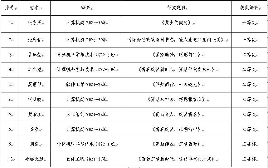 为深入学习贯彻党的二十大精神和2024年全国教育工作会议精神,落实《2024年广西学生资助工作要点》精神,大力宣传国家资助政策及成效,用心讲好中国学生资助故事,在全院营造出感恩资助,励志成才的良好氛围,切实提升资助育人实效。4月1日—5月15日,学院成功举办“青春筑梦新时代,资助伴我向未来”资助主题系列活动。 以笔抒意,助人筑梦——资助主题征文比赛 以手中笔,描感恩心,以笔墨为媒介,字里行间流露出对党和国家资助之恩的感念之情,一篇篇诗词、散文、笔记、信件等作品呈现在我们的眼前,每一篇作品都蕴含了同学们的真挚情感和深刻思考,表达了学生对资助政策的感恩之情,更是展现了学生自强自立、拼搏进取、饮水思源的良好品质。愿同学们不忘初心,砥砺前行,在国家资助下展翅高飞。 歌颂党恩,助梦飞翔——资助主题演讲比赛 在国家资助政策的暖阳下,受助学生结合个人实际,有的深情地讲述了个人事迹和成长经历;有的满怀激情地表达了对国家资助政策的由衷感激之情;还有的放眼未来,表达自己立志用所学回馈社会的坚定志向。用真挚的语言表达自己对党和国家的感恩,展现出了爱党爱国、不畏困难、积极进取、奋发学习、自立自强的精神面貌。 励志成长,奋勇拼搏——资助主题观影活动 观影明志,塑造人生。此次励志影片《八角笼中》是关于勇气与奋斗的励志电影。影片通过感人至深的故事情节,为同学们带来了视觉和听觉上的心灵洗礼。影片《八角笼中》中角色展现出不畏困难、勇毅前行、自立自强的精神面貌,宣扬了新时代青年学子应有的励志奋斗精神,加深青年学子的诚信、感恩励志意识,使同学们接受了一次思想的洗礼和熏陶,接受了一次深刻的励志教育。在潜移默化地熏陶、感染和教育下,引导学生树立坚持不懈、迎难而上的精神品质。 助学圆梦,矢志奋斗——资助政策主题宣讲会 教育课上,各年级辅导员采用图文、表格、视频及案例等多种学生喜爱的方式,详细阐释了“奖、助、贷、勤、免、补”多元立体资助体系,不仅深入解读了国家奖学金、国家励志奖学金、自治区人民政府奖学金、国家助学贷款、国家助学金、勤工助学、学费补(代)偿、学费减免和“绿色通道”等各项资助政策的内容和申请方式;还鼓励同学们在困难逆境中成长成才,在学思践悟中坚定理想信念,在具体实践中弘扬奋斗精神,以实际行动展现出新时代大学生的责任与担当。 感恩于心,诚信于行——感恩诚信教育主题报告会 讲诚信,懂感恩,更要将其践之于行。主题报告会由各年级辅导员主讲,主题报告会正确引导了学生养成感恩励志的思想,让学生们懂得了刻苦学习、努力奋斗、求真求实就是感恩的最好表现,就是回报的最好形式。把感恩与诚信融合于日常生活中,保持一颗善良的心,坚定自己的信念,用顽强拼搏与点滴进步去渲染青春的色彩。 学院始终坚持以习近平新时代中国特色社会主义思想和党的二十大精神为引领,牢记为党育人、为国育才的初心使命。学院通过本次资助育人主题系列活动的成功开展,进一步激发学院学子爱党爱国情怀、励志奋斗精神,促进受助学生养成自信、自立、自强的优秀品质,强化了受助学子的感恩意识。同学们纷纷表示,党和国家的资助政策已经解决了求学路上的经济困难,我们将心无旁骛地全身心投入到学习和实践中,立志不负青春韶华,努力做到学以立德,学以立志,学以明道,争做国家栋梁之才,为实现中华民族伟大复兴的中国梦贡献青春力量。 资助主题征文比赛获奖名单 部分优秀征文作品 演讲比赛现场 观影现场 主题宣讲会现场 感恩诚信教育主题报告会现场 (一审:崔之府;二审:孟德;三审:黎超业)