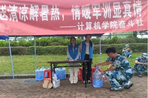 水送清凉解暑热,情暖军训显真情。9月11日至26日,由学院奋斗社组织的“军训志愿送水服务活动”顺利举行。学院奋斗社志愿者在服务预设区设置服务点,发扬志愿精神,体味奉献真谛,为军训的顺利进行保驾护航。 志愿服务源于心,献出爱心在于行。奋斗社各部门积极参与、团结协作,为军训学生送上了丝丝甘甜和暖心关怀。志愿者们在足球场入口处搭建帐篷,设置志愿服务点,负责后勤的志愿者将物资送到服务点,为教官和新生提供水源补给,为身体不适的同学提供热水以及葡萄糖、藿香正气水等药物,给他们提供阴凉休息的地方,在一定程度上缓解了他们的不适。此外,志愿者们积极地与学弟学妹们交流,为他们解答一些生活中的问题,他们的身影成了军训期间一道亮丽的风景线。 迷彩九月,笑颜青春,此次志愿服务活动,仿佛一泓清泉缓缓滋润新生心田,缓解了新生们的军训压力,拉近了新生与学院的距离,让新生们切实感受到了学院的关爱。 活动现场 (一审:劳家宝;二审:孟德;三审:黎超业)