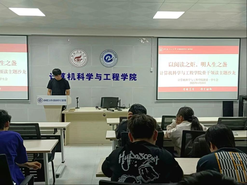 为深入学习贯彻习近平文化思想,贯彻落实习近平总书记关于推进全民阅读、建设书香社会等重要指示精神,学院在“4·23”世界读书日来临之际,开展“以阅读之炬,明人生之盏”主题读书活动。 活动首设“经典中的真理力量”研读环节,学院各班骨干、学生组织成员及“青马工程”学员精读《习近平谈治国理政》第四卷、《中国共产党简史》等权威著作。红色基因在原著共读中悄然传承,理论学习的热潮在校园内持续升温。 朋辈联读交流会上,团员青年聚焦“读原著、学原文、悟原理”,结合专业学习与成长经历,分享书中的精神密码与人生启示。 知识竞赛环节以“以书会友・以赛促学”为宗旨,设置“书名灯谜”“党史快问快答”“传统文化闯关”等趣味关卡,激发了青年学子探索中华优秀传统文化的浓厚兴趣,让文化传承在互动体验中焕发生机。 此次主题读书活动是学院落实“大思政课”建设的生动实践。从原著研读的深度思考,到朋辈交流的思想共振,再到知识竞赛的活力绽放,学院青年在阅读中触摸历史脉搏、感悟理论伟力、坚定文化自信。活动结束后,同学们一致表示将为建设文化强国、实现民族复兴贡献桂工青年智慧与青春力量。 骨干领读主题沙龙活动 朋辈联读活动 知识竞赛活动(一) 知识竞赛活动(二)