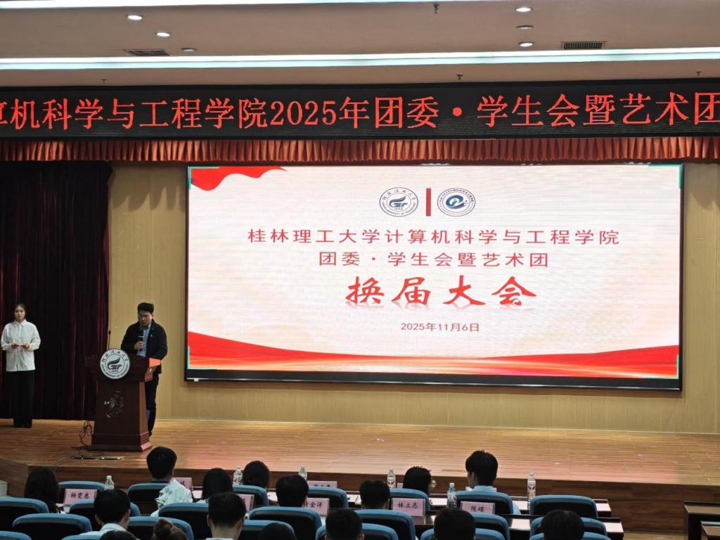 11月6日19:00,学院2025年团委・学生会暨艺术团换届大会在雁山校区图书馆报告厅隆重举行。学院党委副书记黎超业,团委副书记蔡志勇,兼职辅导员苏园颖、马子康、王景艳、游佳斌以及团委・学生会、院艺术团22至25级全体成员齐聚现场,共同见证这一薪火交接的重要时刻。 大会在庄严的国歌声中拉开序幕。学院团委副书记蔡志勇老师率先致辞,他高度肯定了学生组织过往在校园文化营造、学生服务保障等工作中取得的亮眼成果,向默默耕耘的同学们致以诚挚谢意。同时他寄语全体成员,要以饱满热情与务实作风投身永利集团,在服务同学、建设学院的道路上稳步前行。 22级主席团成员杨雯惠代表往届团队作工作总结。她系统梳理了团委・学生会在思想引领、校园活动策划、学生权益服务等领域的突出成绩,直面工作流程衔接、活动创新度不足等问题,并向新一届成员送上恳切寄语,期许大家续写佳绩。随后,各部门依次述职,简明汇报年度成果与未来规划。 换届聘任仪式在全场热烈掌声中开启。学院领导、老师为往届成员颁发聘书,这份荣誉凝结着大家的辛勤付出,更承载着沉甸甸的责任。23级主席团成员于钱作为新一届代表发言,他坚定表态将接好工作接力棒,以更昂扬的姿态砥砺奋进,全力为学院发展贡献青春力量。 学院党委副书记、纪委书记黎超业老师作总结讲话。他高度认可上一届成员的付出,并对新一届团队提出三点要求:一是坚定理想信念,坚守服务同学的初心;二是深耕自我提升,锤炼综合素养;三是勇于突破创新,打造特色工作品牌。一番话语掷地有声,为全体成员指明方向、提振士气。 大会最终在师生合影留念的温馨氛围中落下帷幕。此次换届大会既是对过往工作的复盘总结,更是一次精神传承与思想凝聚。相信新一届学生组织成员定能凝心聚力,推动学院团学工作迈上新台阶,为学院高质量发展注入源源不断的青春动能。